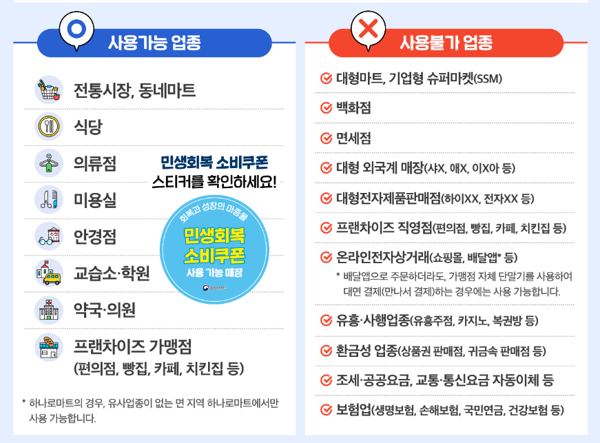 추진배경: 민생경제 회복을 위한 조치로 소비활성화와 소상공인 및 자영업자 매출확대를 위해 민생회복 소비쿠폰 지급