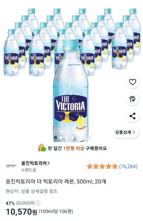 탄산수를 시키면서부터 쿠팡에서 종류별로 탄산수 시켜서 마셔보고 있는 중이다. 트레비(초록색), 아쿠아(노란색), 몽베스트(보라색)를 마셔보았고, 이번에 '더 빅토리아 레몬'을 시켜보았다.