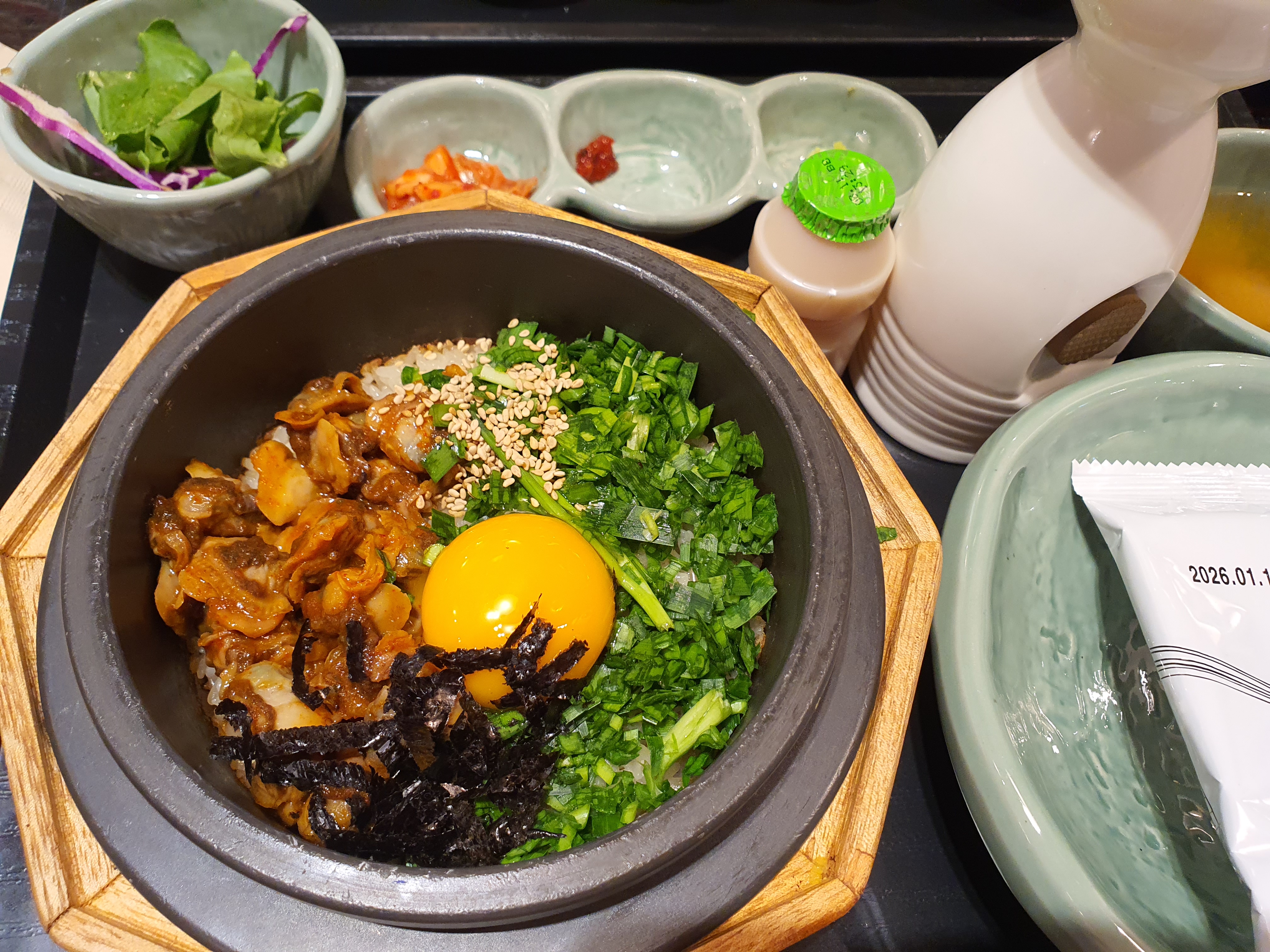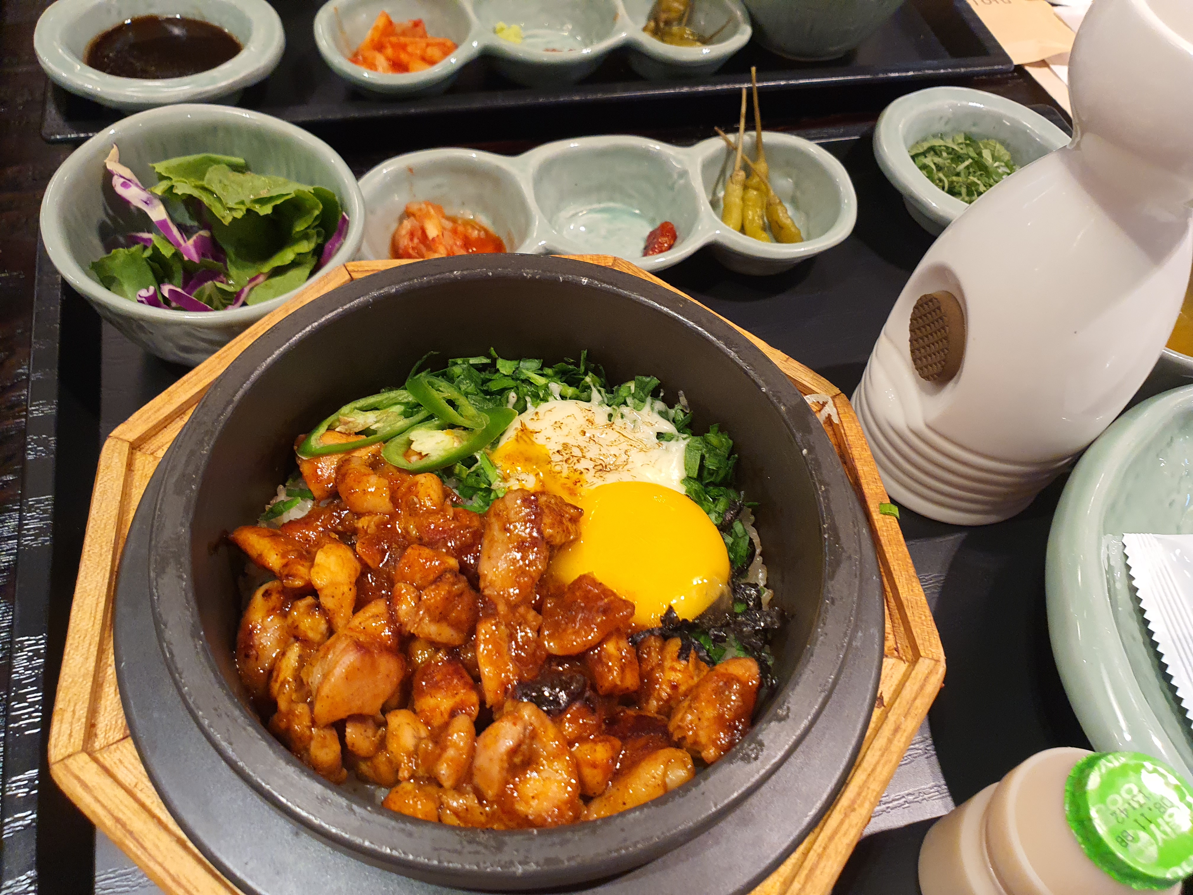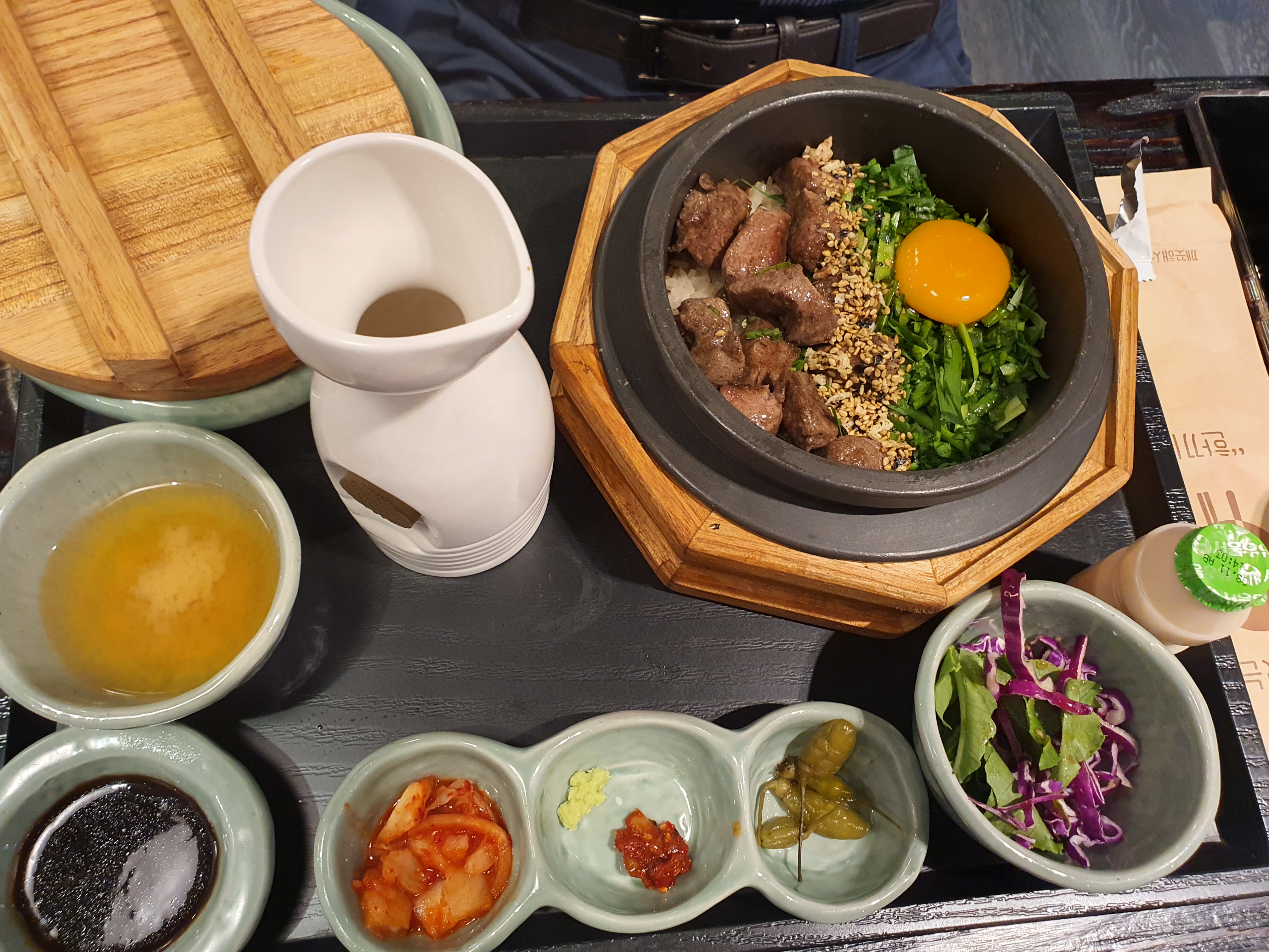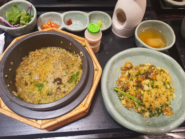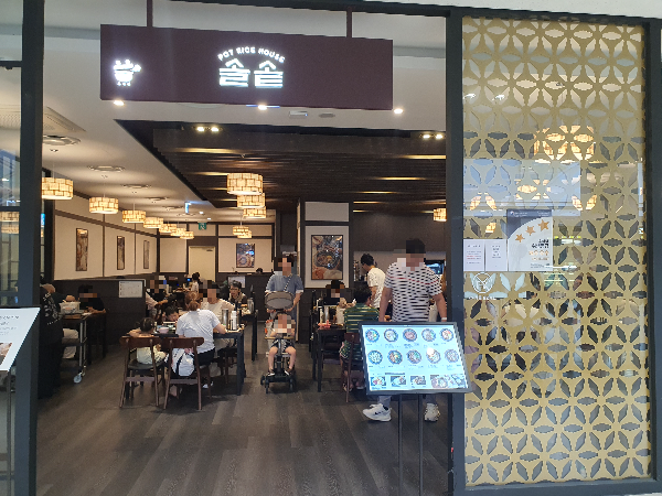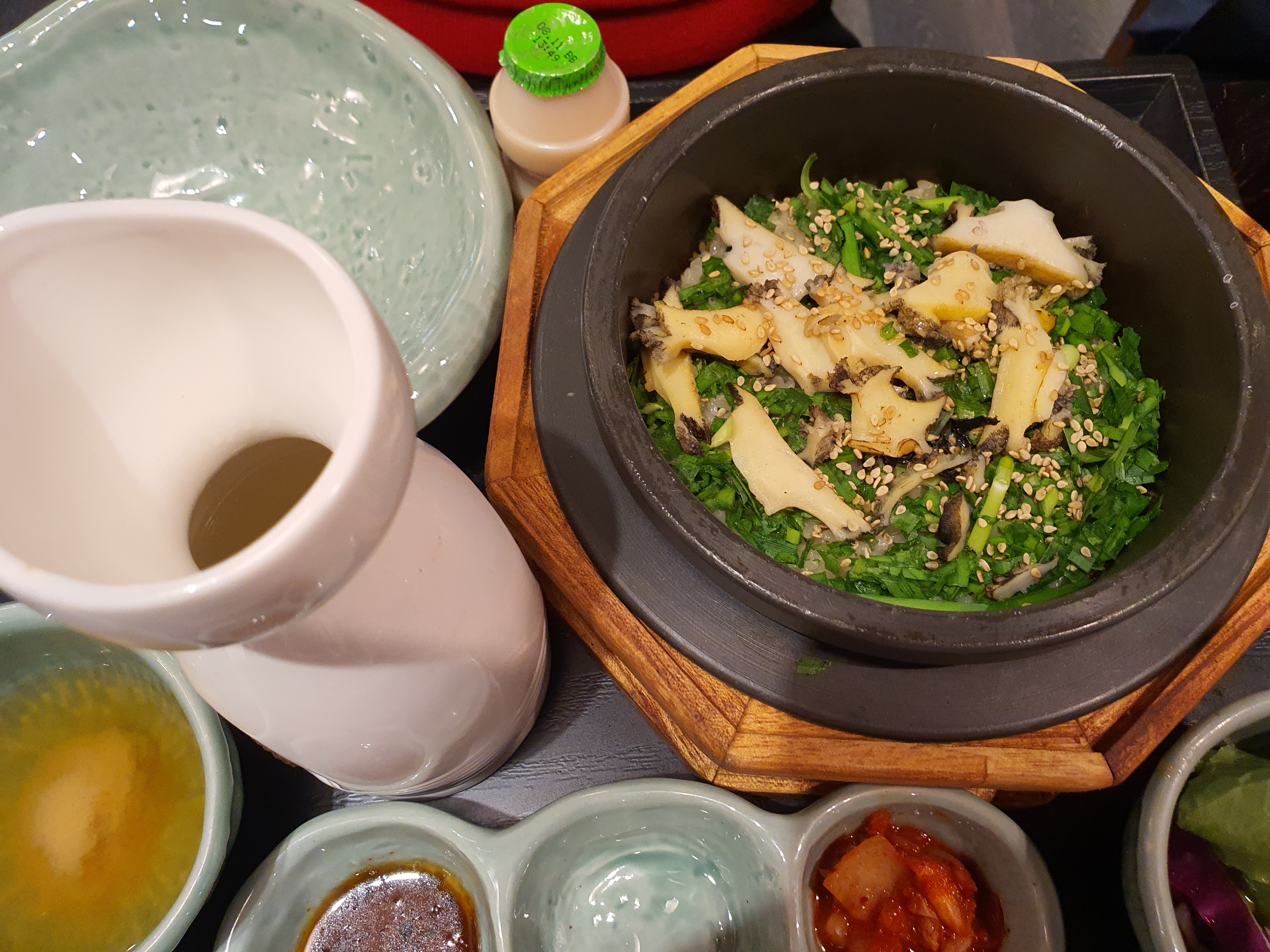 돌솥 판에 메뉴가 세팅되어 나오기에 레스토랑 이름에 '솥'자가 붙은 모양이다. 사람들이 꽤 많아서 우리 일행 6명이 앉기 위해서는 밖에서 조금 대기를 하였다.