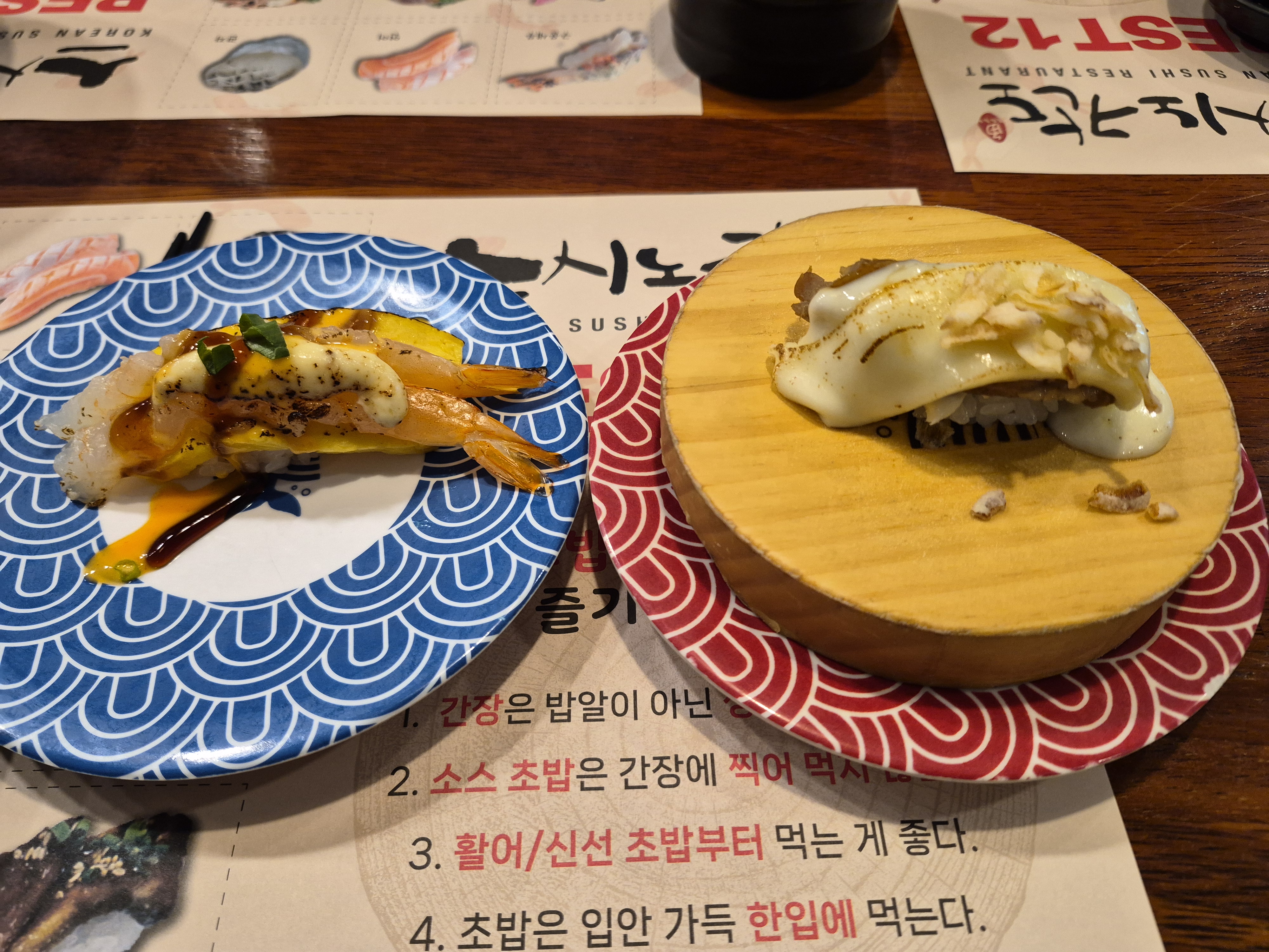 오늘 회사가 휴무이다. 어제 인천공항 픽업만 갔다오고 오늘은 쉬니 넘 좋다. 오늘은 딸들이랑 안양 범계 회전초밥집 스시노칸도에 갔다. 음식은 모두 한접시당 2,200원이다.